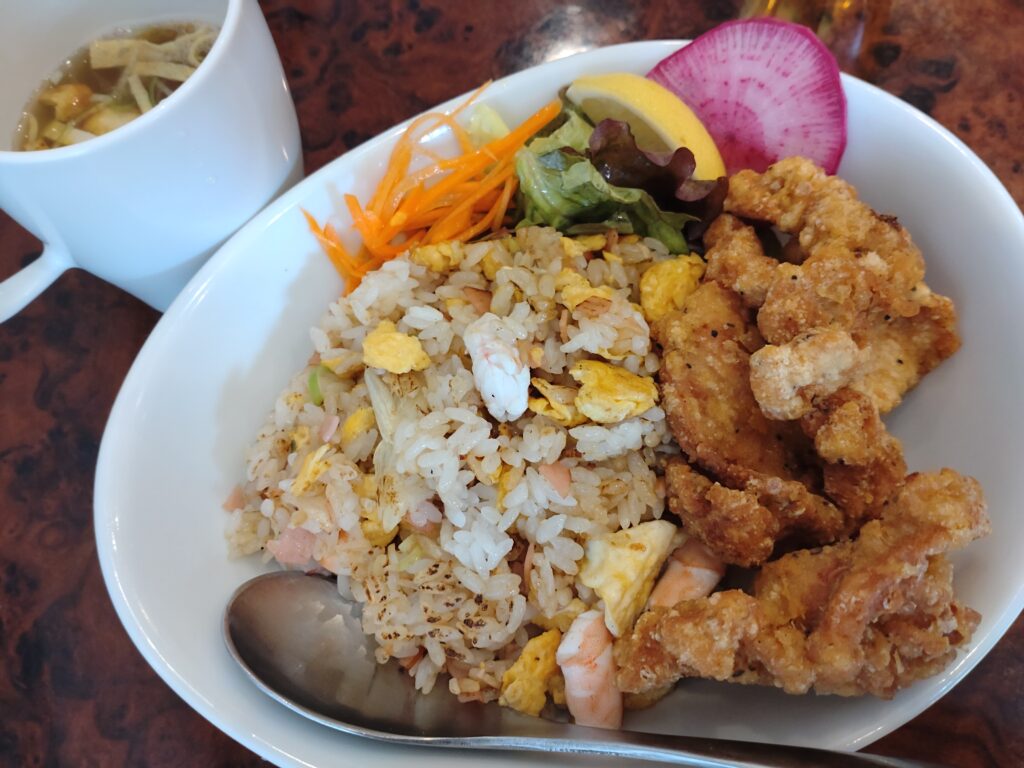 唐揚げもカラッとサクサク揚がってるし、焼飯もエビもたっぷり、