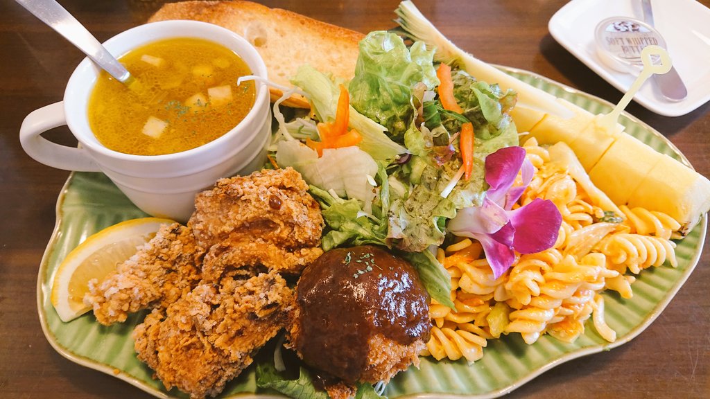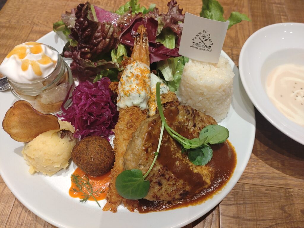ワンプレートにデザートまでのせられ、お皿の半分ほどは