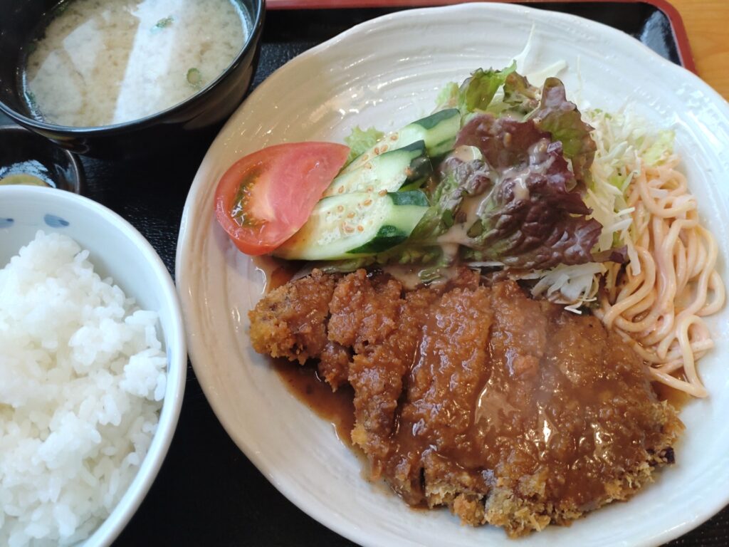 やわらかい大きなカツに大満足。食後のコーヒーサービスもあります。